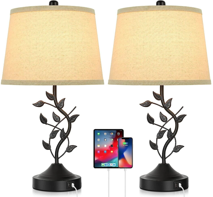 ❤【Elegant Table Lamps for Home Lighting】This table lamp is aesthetically styled with the metal leafy design which creates an organic element and endows it with an earthy feel. To complement the retro theme, we equipped it with cream fabric shade. Nevertheless, the base and body are in the classic black finish for preserving its modern look. The distinctive design makes it a timeless option for any decoration scheme such as traditional, vintage, modern, rustic etc.