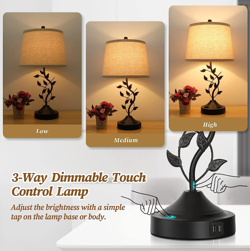 ❤【Dimmable Touch Table Lamps for Bedroom】Boasting the advanced dimming technology, these traditional table lamps offer 3 levels of brightness to meet your lighting needs at different times or occasions. With built-in touch sensor, you can turn on/off the light and adjust brightness by a simple tap on the metal lamp base or lamp body. The noise-free touch control design and convenient dimming function make them an excellent choice of bedroom lamps.