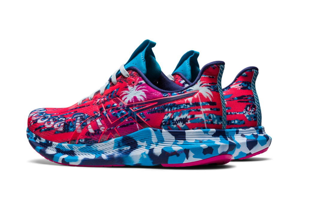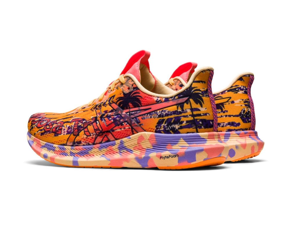 Bold colors and patterns on the engineered mesh upper are inspired by the early GEL-NOOSA™ styles from the 2000s. Convenient features, like the tongue pull-tabs and toggled laces make the shoes easier to put on. This makes it more practical after exiting the swim stage of a triathlon or getting out the door quicker. With GUIDESOLE® technology underfoot, these shoes help reduce ankle flexion. Its curved design allows you to conserve more energy while experiencing an easy forward roll.