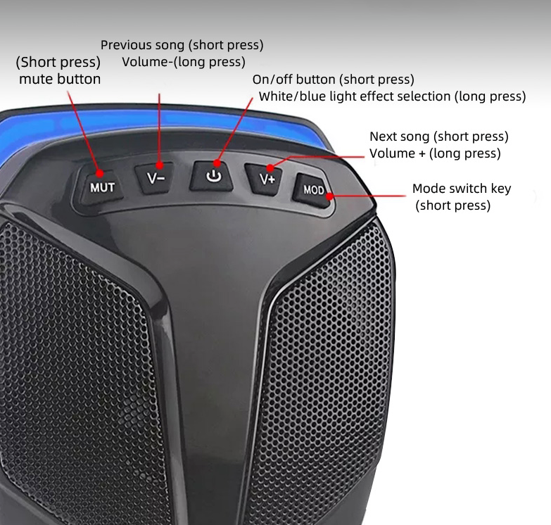 FM Radio Receiver Built in. Support USB and microSD Card MP3 files. Support USB Charging. Blue and White LEDs Light Effect. Perfect for Can-Am ATV UTV Pioneer Polaris RZR Wolverine Yamaha YXZ Kawasaki Mule 4 Wheeler Jeep GoKart Golf Cart Electric Bike Marine Boat.