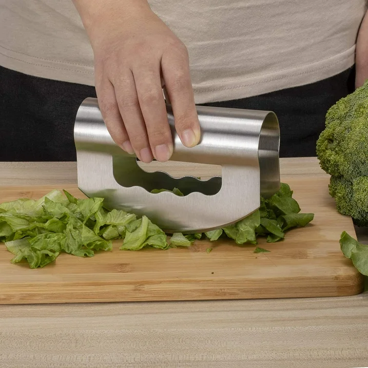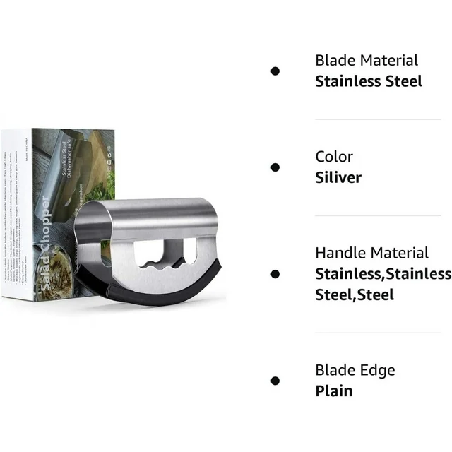 Stainless Steel Double Blade Knife Salad Chopper, Double Blades and Ergonomically Design, Mezzaluna Double Blade Chopper/ Chopped Salad Chopper/ Salad Chopper Tool/ Lettuce Chopper for Salad/ Salad Cutter for Salad Chopper Bowl. Vegetable salad chopper, make your life a little easier!