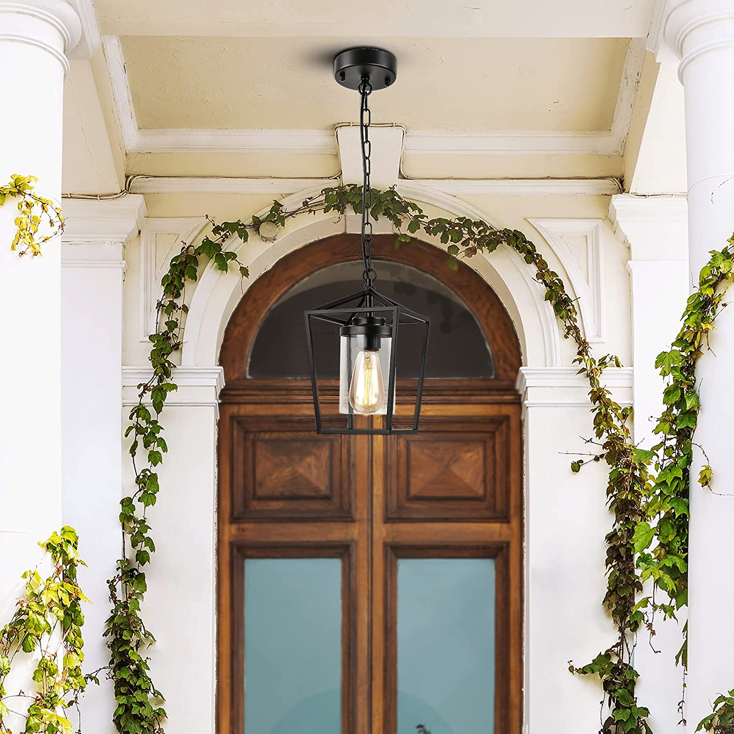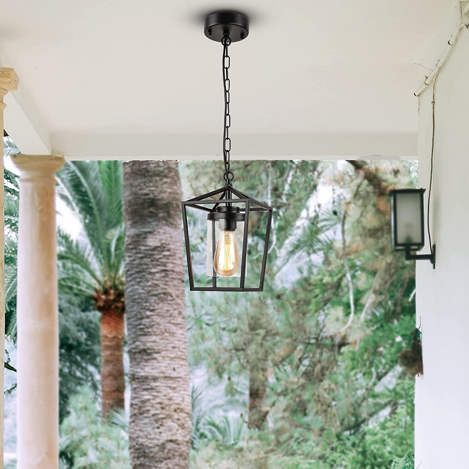 Farmhouse Pendant Lights Kitchen Island, Indoor Outdoor Hanging Chandelier, Blac