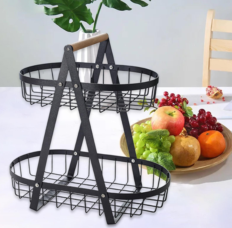 【Detachable】2 Tier fruit basket, stacked or use it as two separate baskets. It can hold various fruits, vegetables, bread, keeping your space neat and tidy.