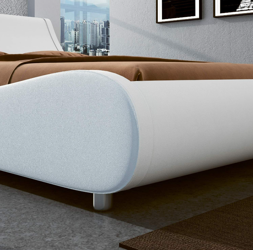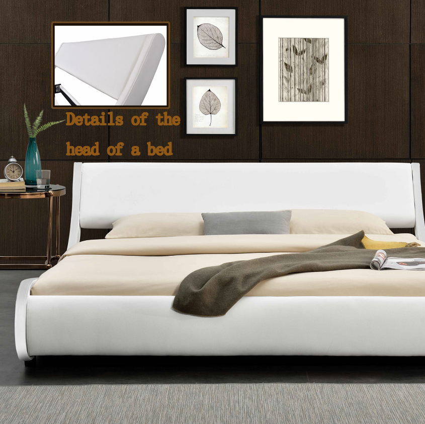 King Size Leather Low Profile Sleigh Platform Bed Frame with Headboard,White
