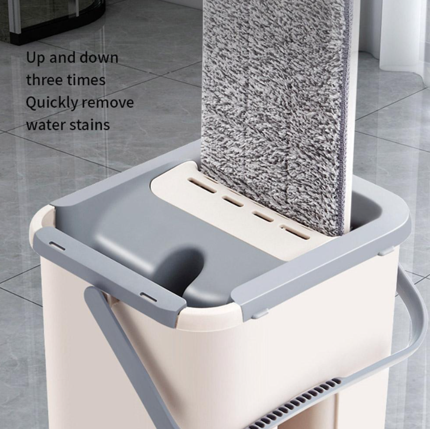 3.Hygienic and mess-free: The built-in bucket features a self-wringing mechanism that allows you to squeeze out excess water from the mop head without getting your hands wet or dirty. This helps to prevent the spread of germs and