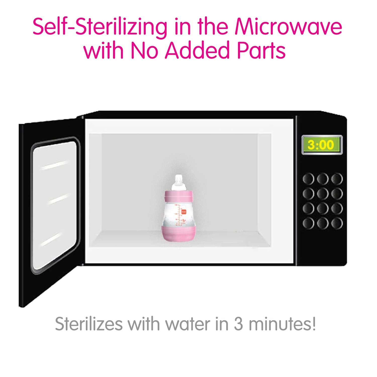 • Bottles feature unique self-sterilizing design