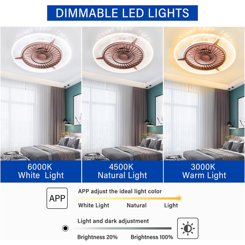 TCFUNDY LED Ceiling Fan with Light Phone APP & Remote Control Ceiling Fan Lamp
