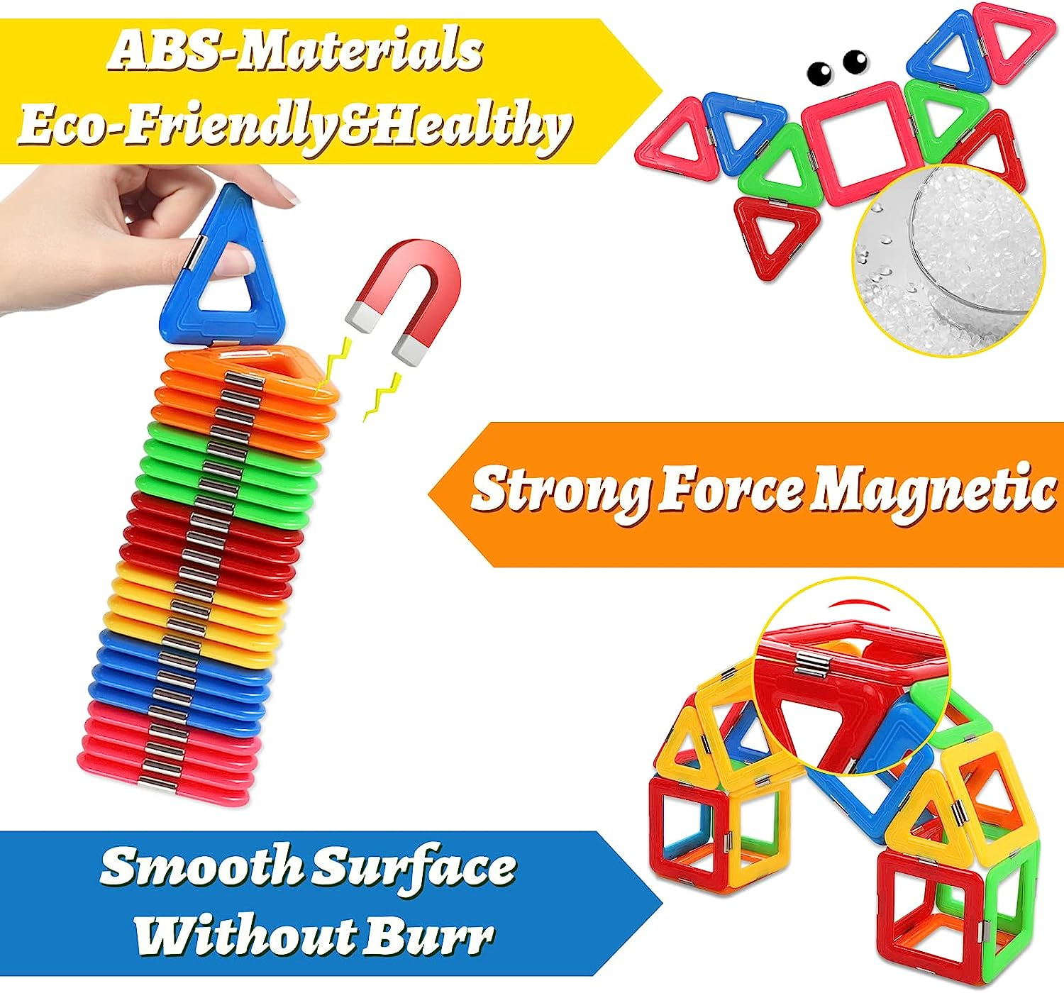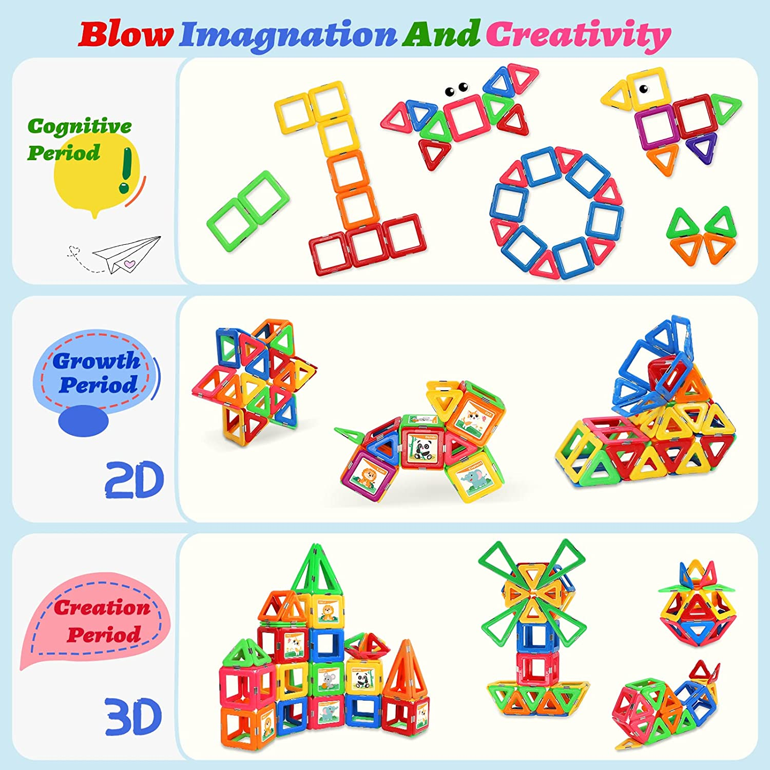 Upgraded Magnetic Tiles for Kids Ages 3-5 4-8 STEM Educational Gifts Toys for 3+